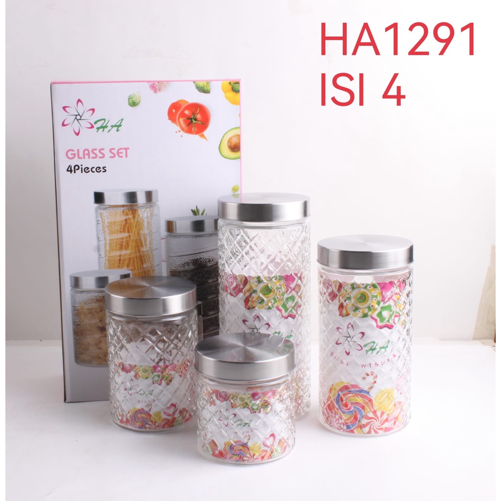 Toples Kaca Set Diamond Glass 4 Pcs / Tempat Penyimpanan Kue Kering Lebaran