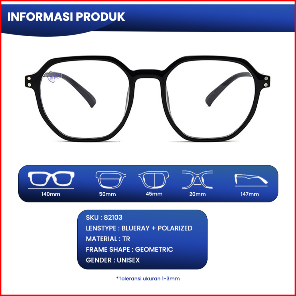 Iooi Eyewear Kacamata Geometric Hitam Clip On Sunglasses Polarized Uv Bisa Minus Pria Wanita 82103