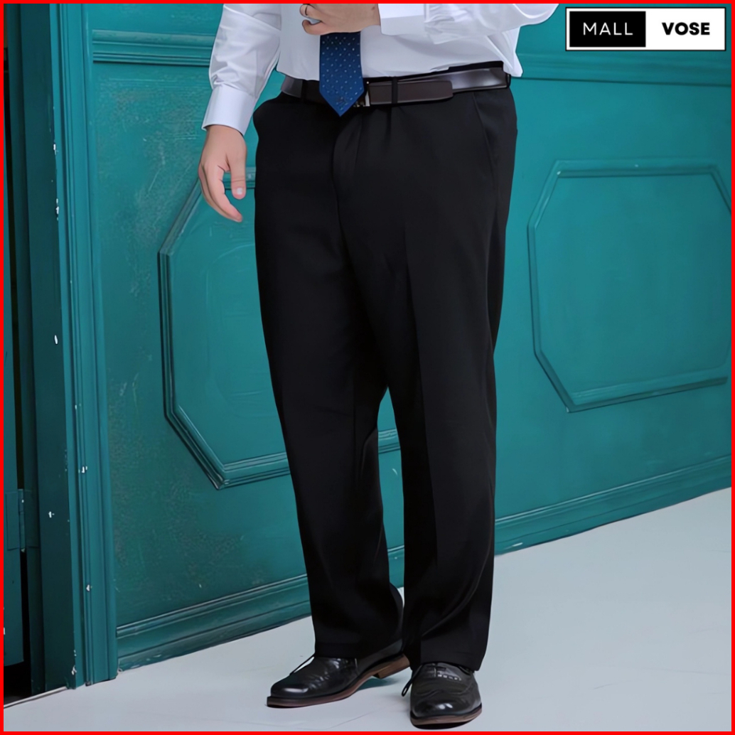 Mallvose - Celana Formal Pria Jumbo Black Slimfit Panjang 103cm Premium