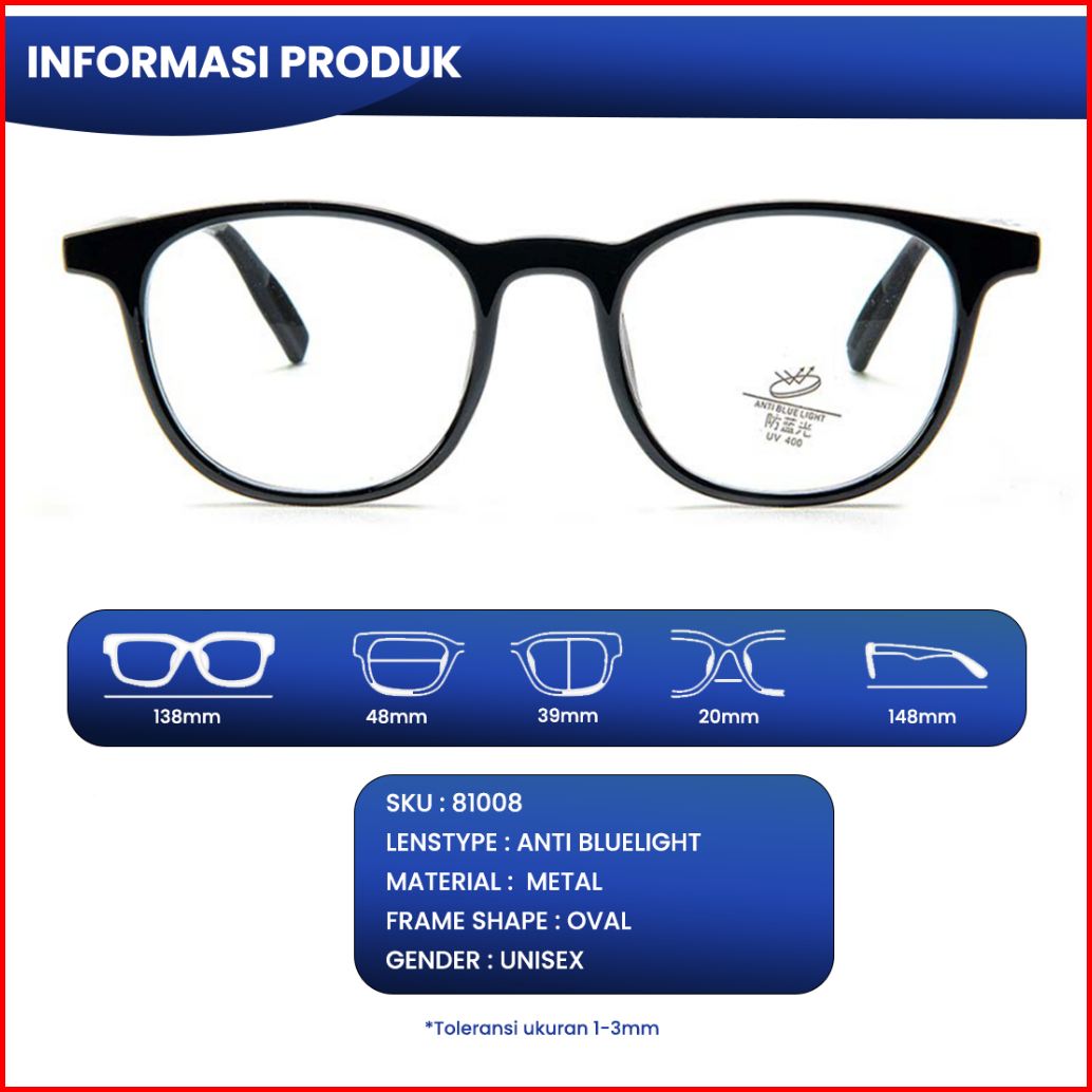 Iooi Eyewear - Kacamata Oval Bahan Metal Lensa Anti Radiasi Blueray Photocromic Pria Wanita 81008