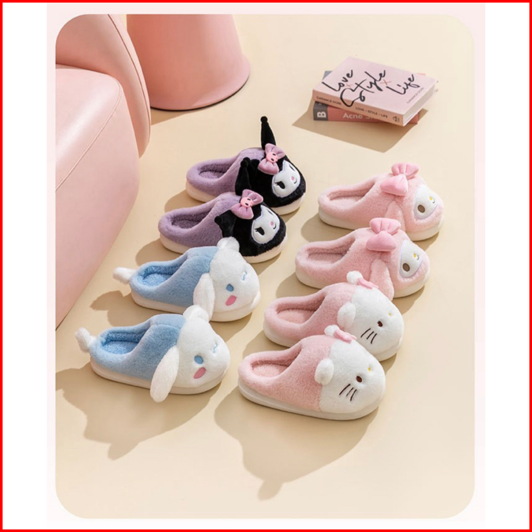 Sandal Rumah Sanrio Melody Pink Kuromi Cinnamoroll Hello Kitty Kucing Sepatu Kamar Lucu