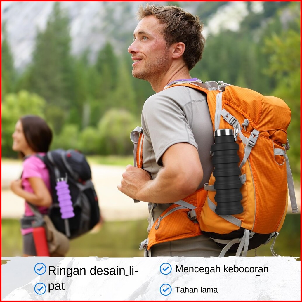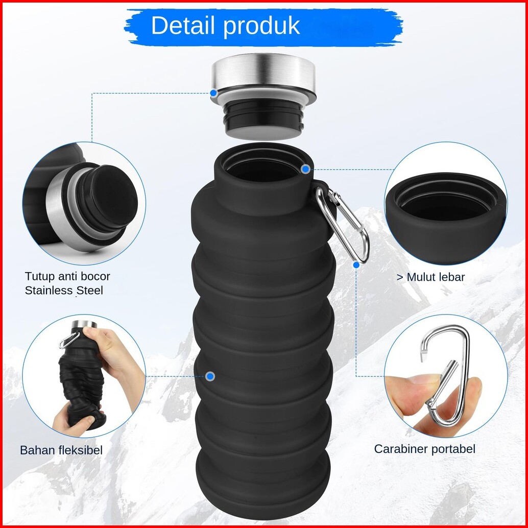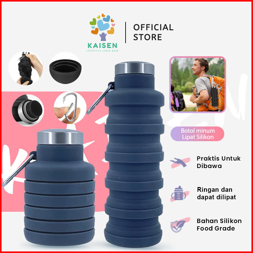 Kaisen Botol Minum Lipat Origami Bottle Botol Minum Lipat Silicone Foldable Bottle Botol Minum Sport 500ml Dengan Hook