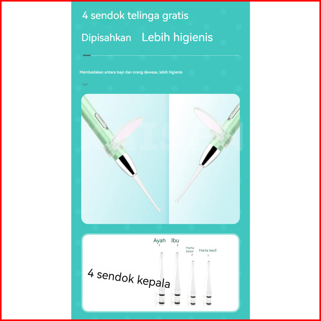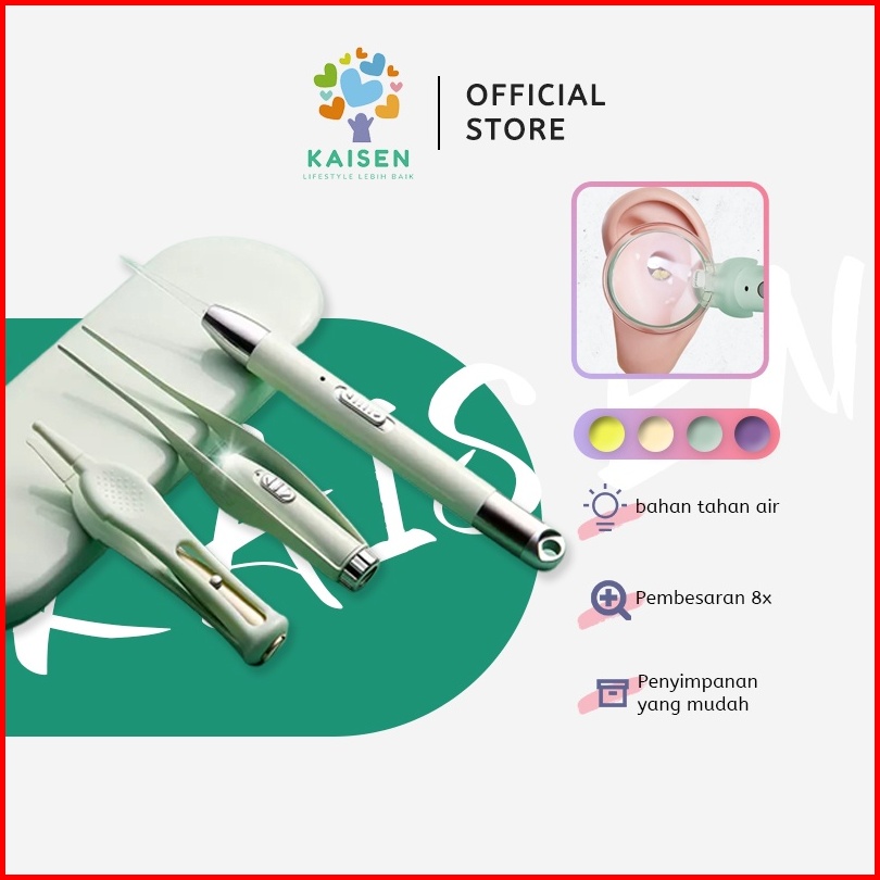 Kaisen 4in1 Pembersih Telinga Korek Kuping Ear Spoon Wax Picker Earpick Dengan Lampu Led Pembersih Hidung