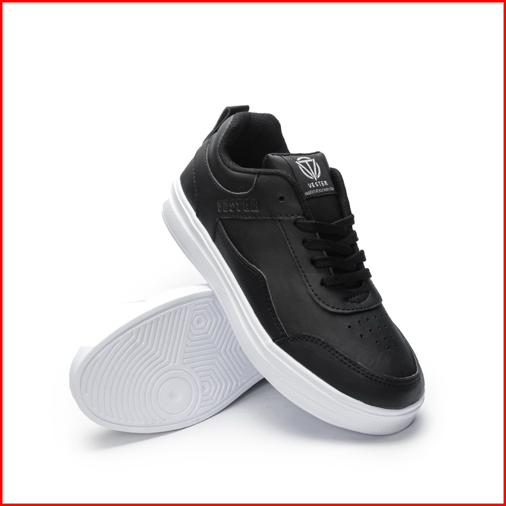 Vester Sepatu Hitam Putih Pria Wanita Sneakers Casual Hikari Size 39 - 43