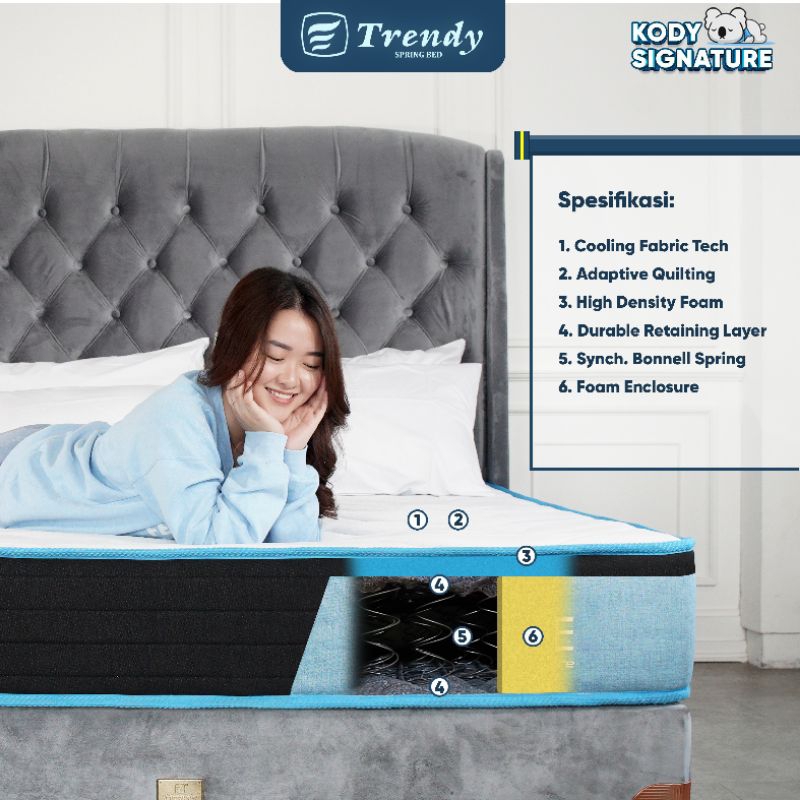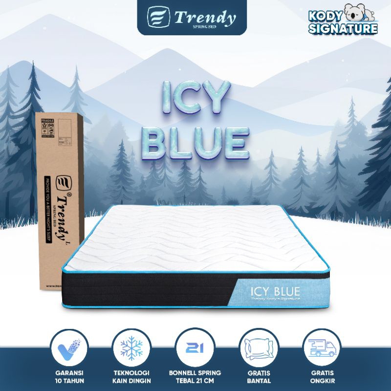 Kody Trendy Icy Blue 21cm Latex- Kasur Spring Bed Dingin - Pegas Bonnell Spring Vacuum Dalam Box