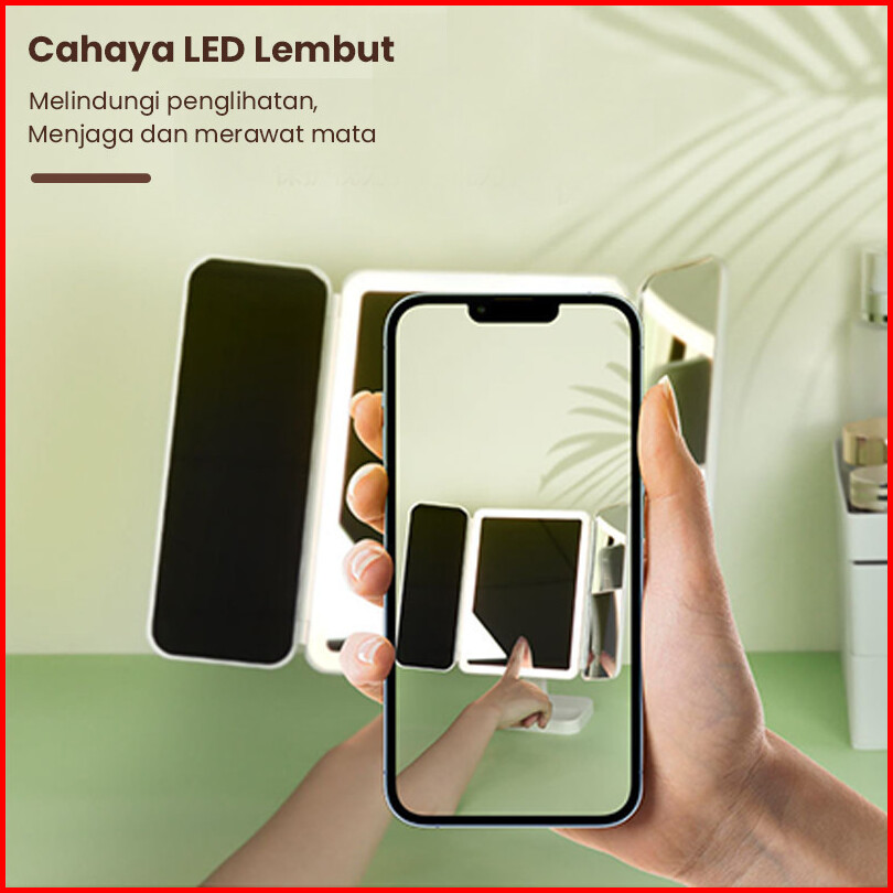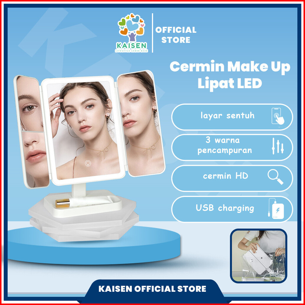 Kaisen 3 Warna Led Rechargeable Cermin Rias Bercahaya Cermin Rias Led Shell Cermin Rias Dengan Lampu Cermin Desktop Peny