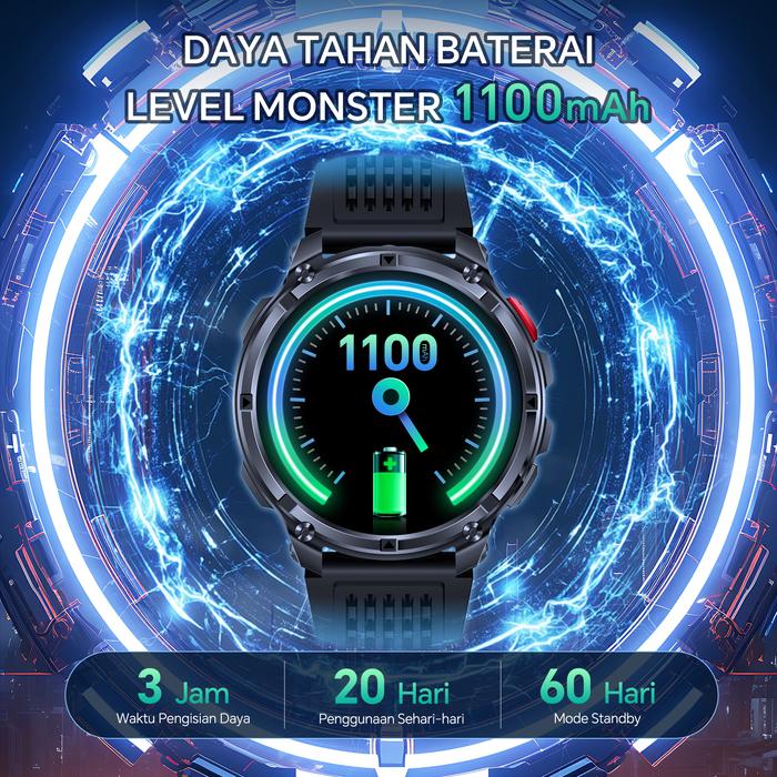 Jam Tangan Daya Tahan Super 1100mAh MorienWear Rock2 baru diluncurkan: Layar 1,7 inci (360x360),
