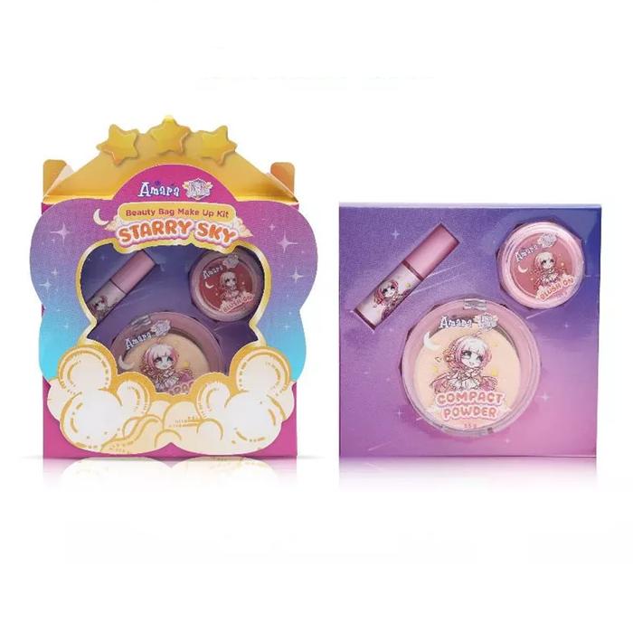 Amara Beauty Bag Make Up Kit Starry Sky – Blush On Lip Gloss Bedak Padat Makeup Anak Lucu BPOM