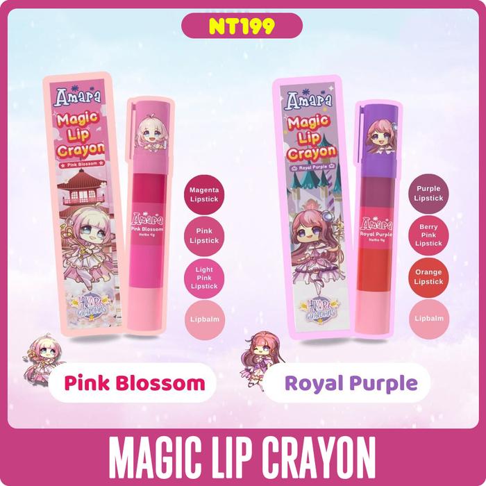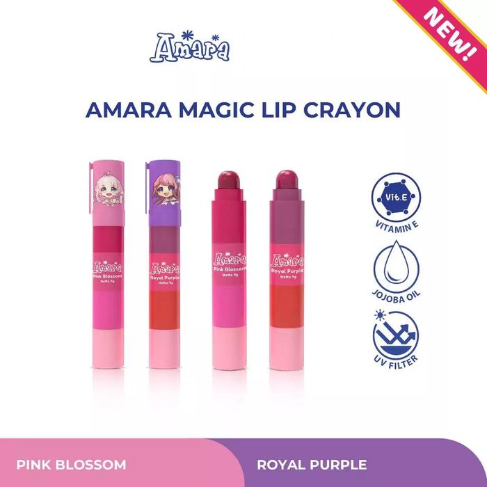 Amara Magic Lip Crayon 4in1 – Lipstik Anak Aman & Lucu + Lipbalm | Pink Blossom & Royal Purple - Pink Blossom