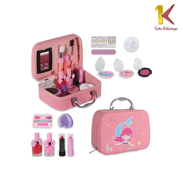 [bayar ditempat] SK M282 Alat Dandan Anak Perempuan Mainan Rias Paket Kosmetik Koper Tas Motif Duyung Set - M282 PINK