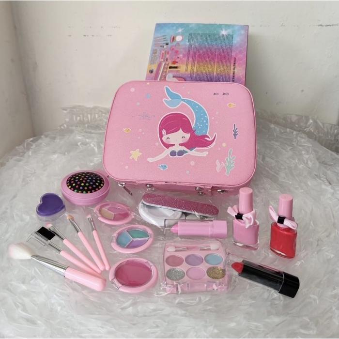 children pretend plays make up kit set mainan make up anak dengan fungsi asli - Pink bag