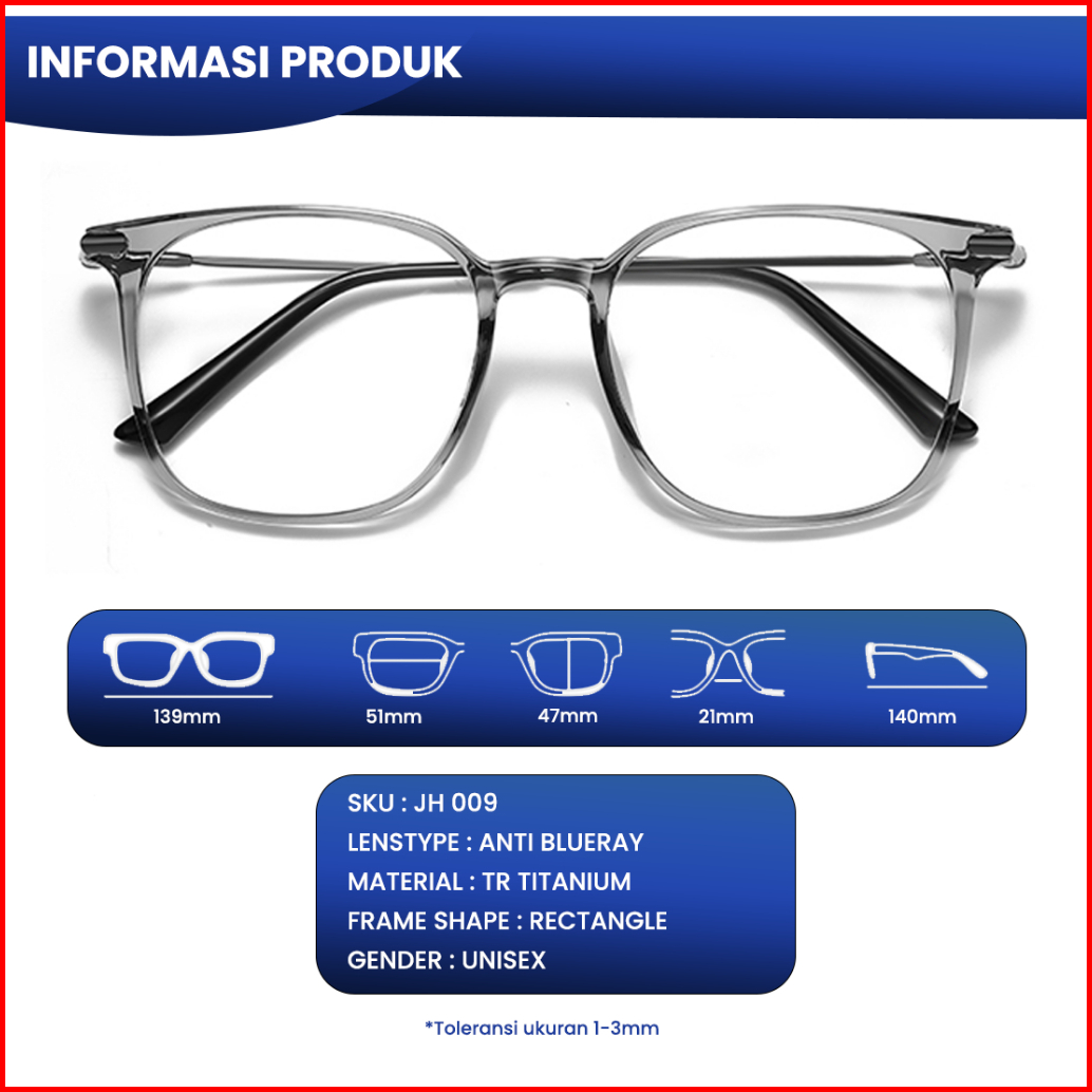 Iooi Eyewear - Kacamata Kotak Tr Titanium Lensa Minus Anti Radiasi Bluecromic Pria Wanita Jh009