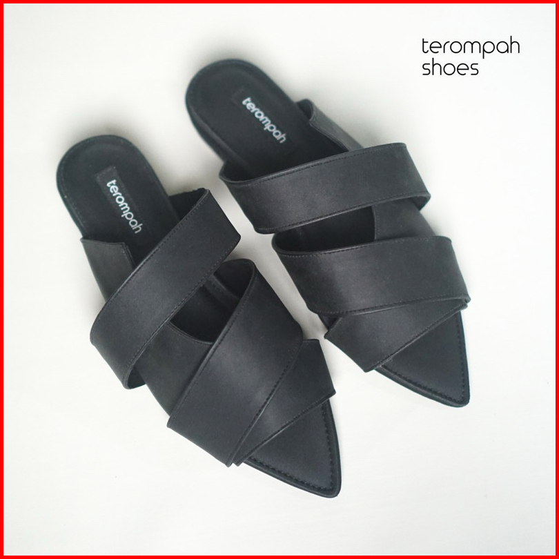 Tarompah Bella Black Mules Wanita Nyaman Elegan