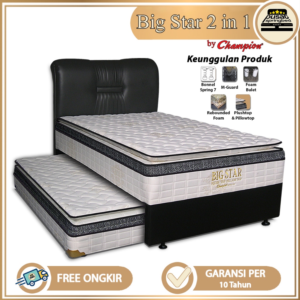 Springbed Kasur Sorong 2 in 1 Plushtop + Pillowtop - Champion Springbed Big Star 2 in 1 Sand. Marion