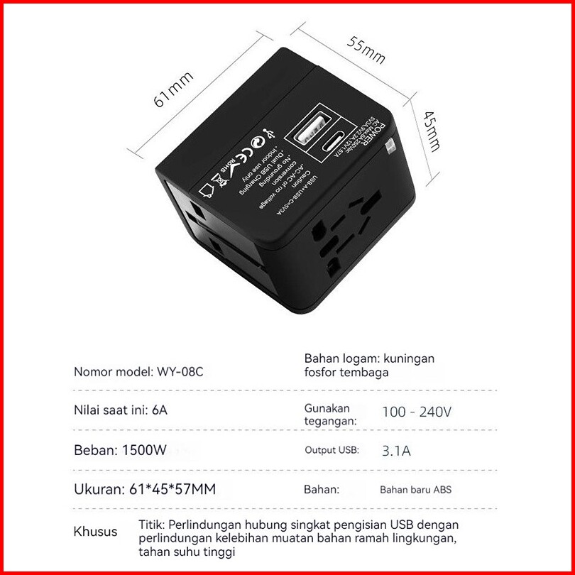 Kaisen Us Eu Au Uk Universal Travel Adaptor 3.6a Fast Charging Colokan Adapter Dual Usb Dual Usb International Travel Ad