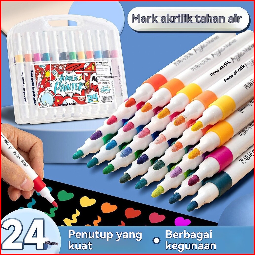 Kaisen Spidol Akrilik Acrylic Marker Set 12 24 36 48 Warnas Paint Marker Diy Painting Tahan Air Pulpen Warna Spidol Warn