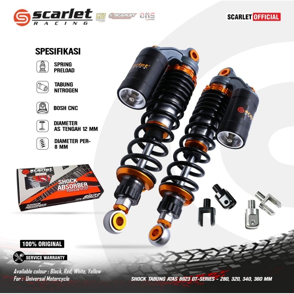 Uk 280,290,300,320,340,350,360Mm Shockbreaker Mono Shock Blkg Buat Matic/Bebek,Tabung Atas Nitrogen Scarlet Racing Seri