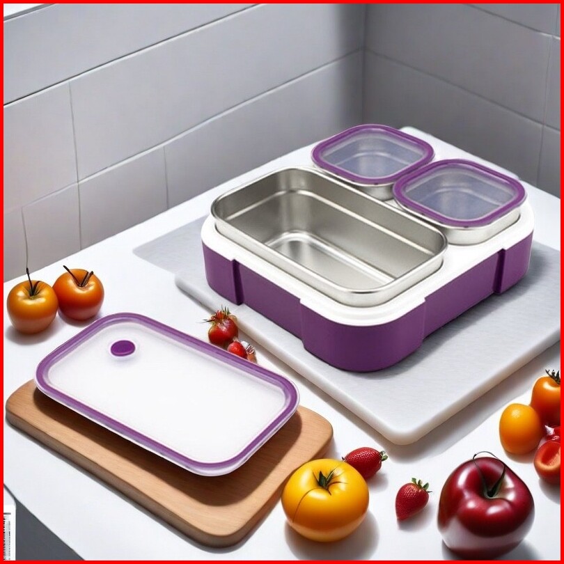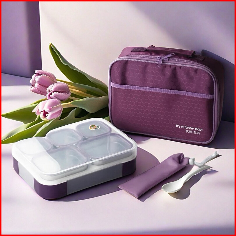 Kotak Makan Box Makanan Stainless 3 5 Sekat Set Dengan Tas Dan Sendok Anti Nyampur Anti Tumpah