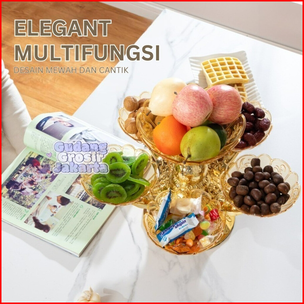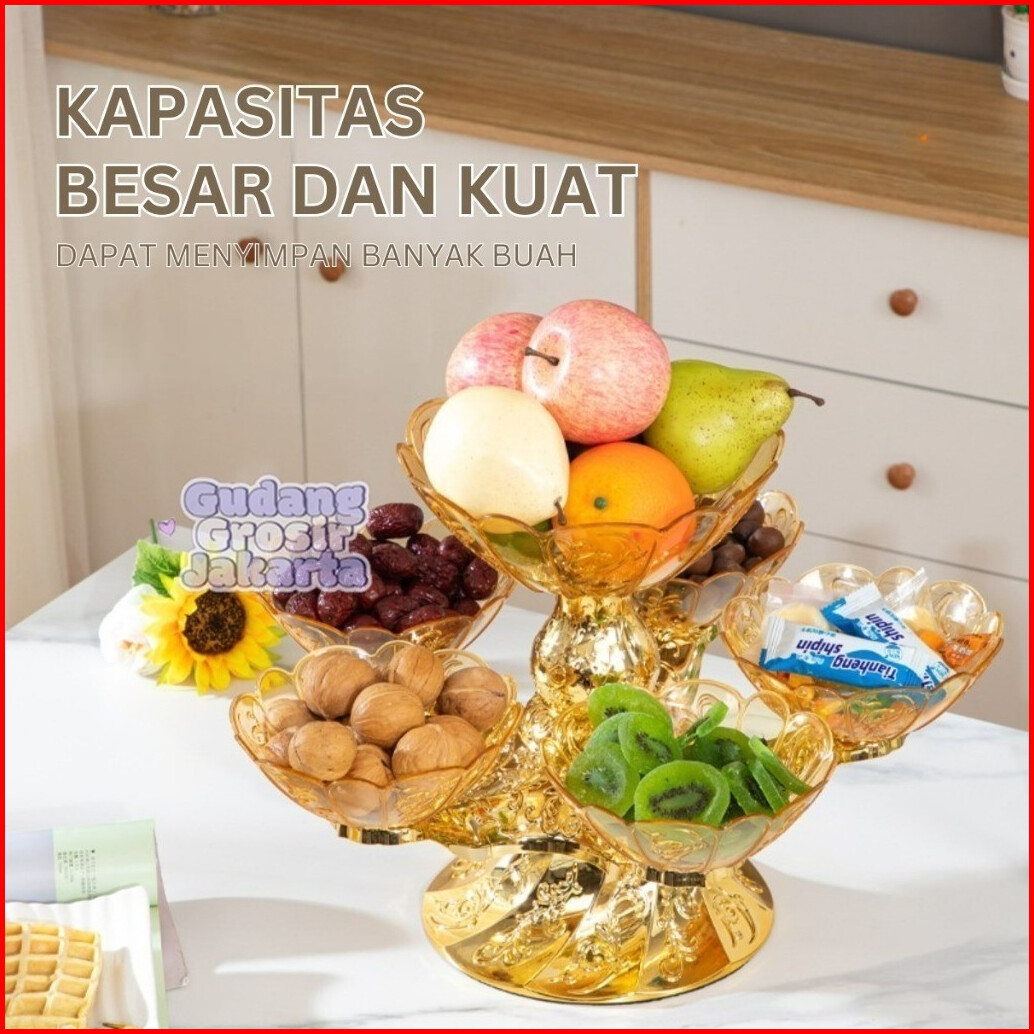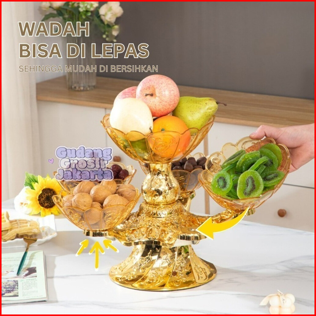 Wadah Buah 2 Tingkat 6in1 Putar 360 Tempat Cemilan Permen Dekorasi Ruang Tamu Estetik