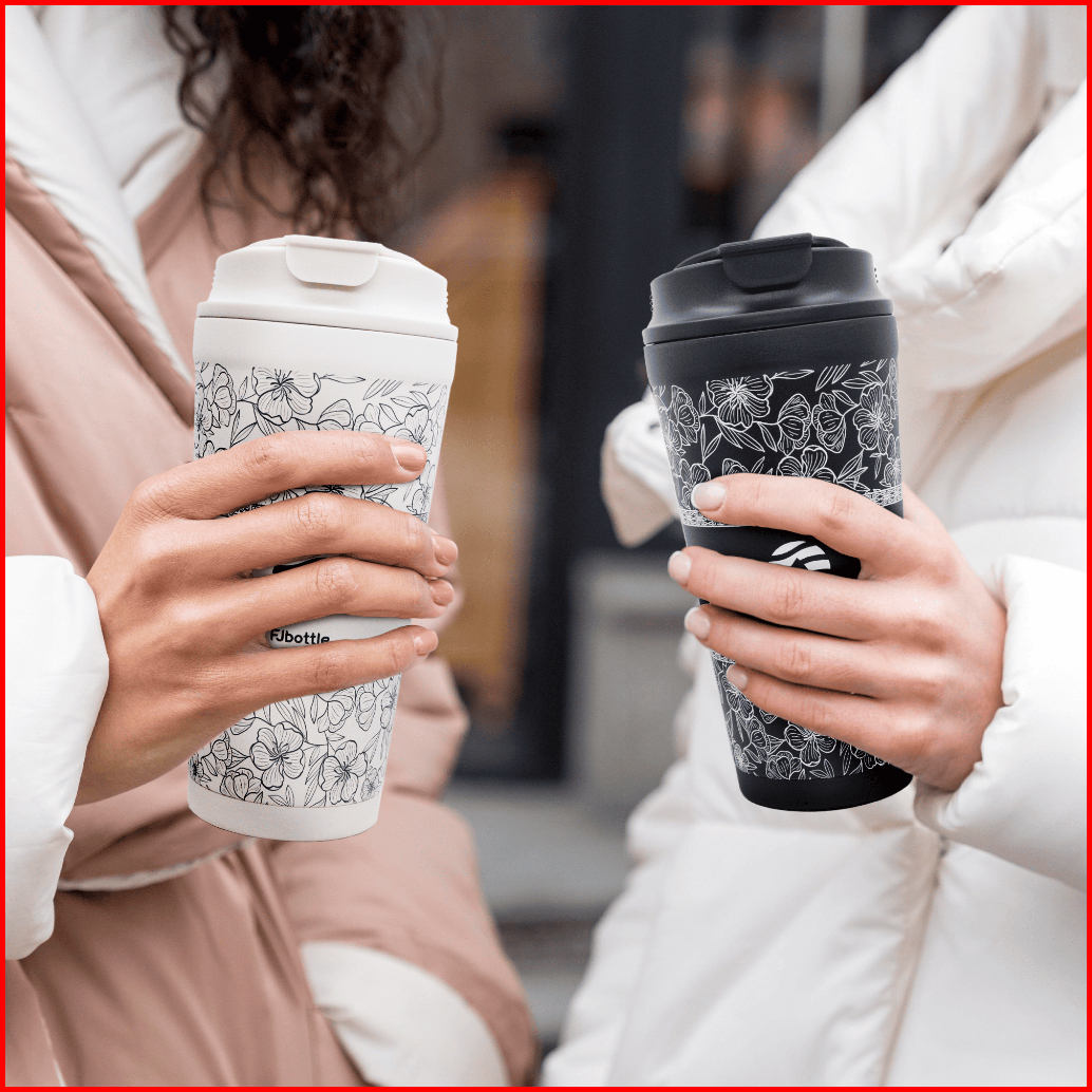 Fjbottle - Sr2042 Botol Minum Tumbler Kopi 500ml Pattern Double Insulated Tutup 2in1 Sus 304