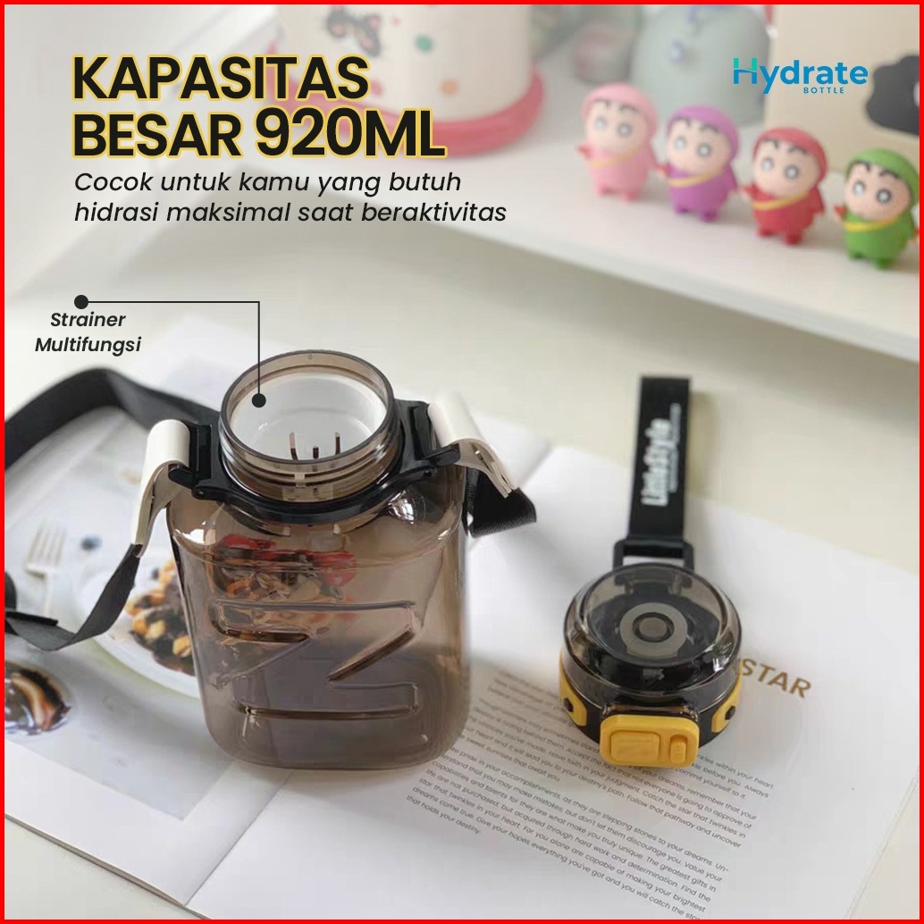 Hydrate Botol Minum Besar Sport 920ml Water Bottle Flip Dewasa Gym Fitness Olahraga Free Tali Yh8026