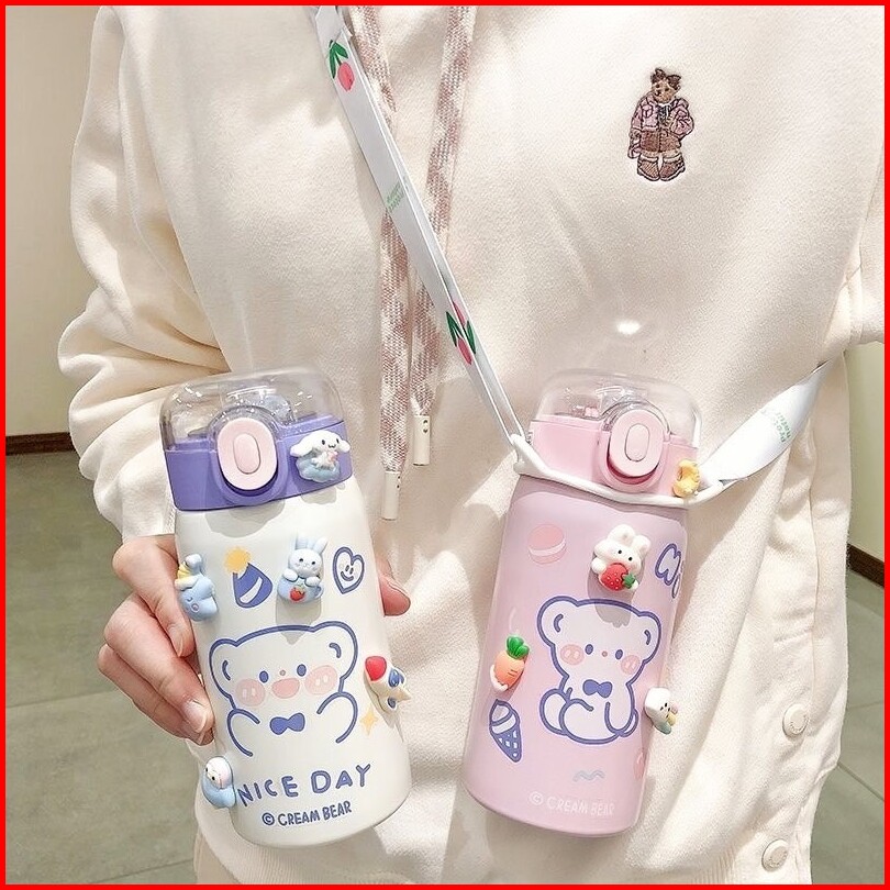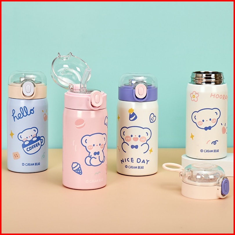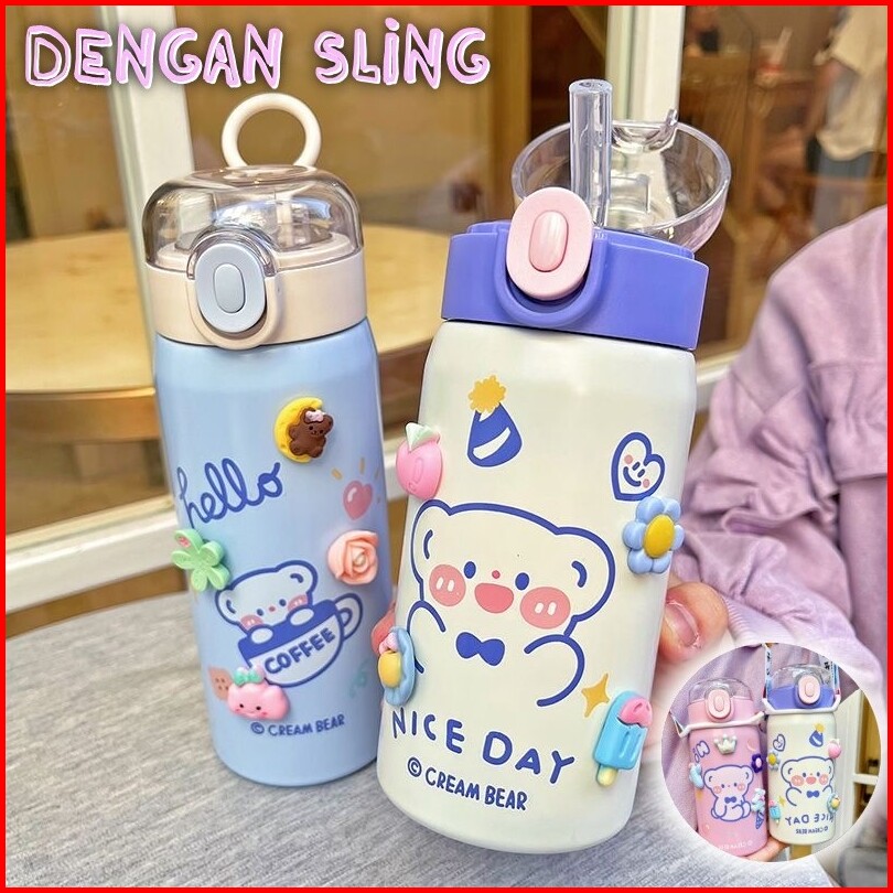 Tumbler Termos Mini Dengan Sedotan Vacuum Cup Hot Cool Stainless Steel 304 Botol Minum Termos Air Anak 450ml Termos Tana