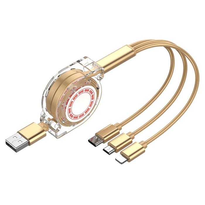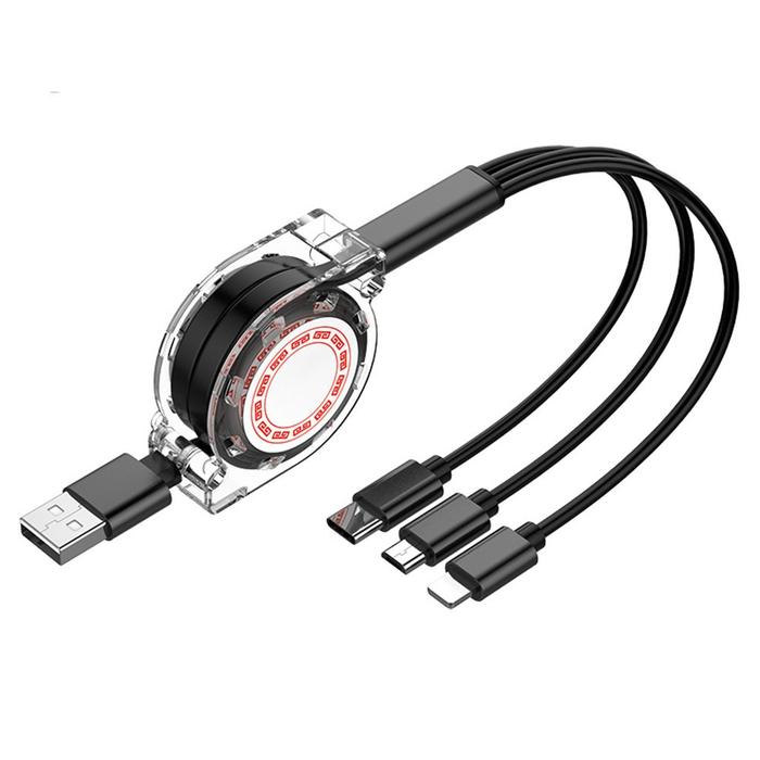 Kabel Stretch roll 3In1 2.4A Pengisian Cepat 1 Meter - Kabel Mikro 3 In 1 Dapat Ditarik - Hitam