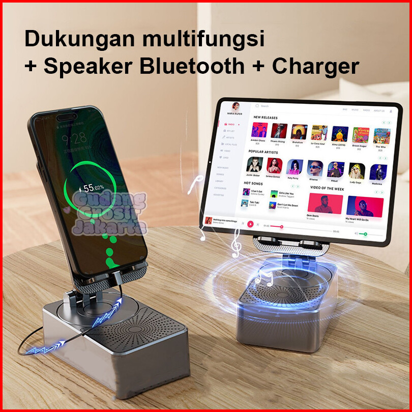 Stand Hp 3in1 Speaker Bluetooth Powerbank 10.000mah Holder Lipat Portable Charger Audio Praktis
