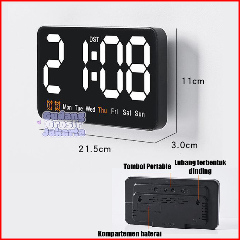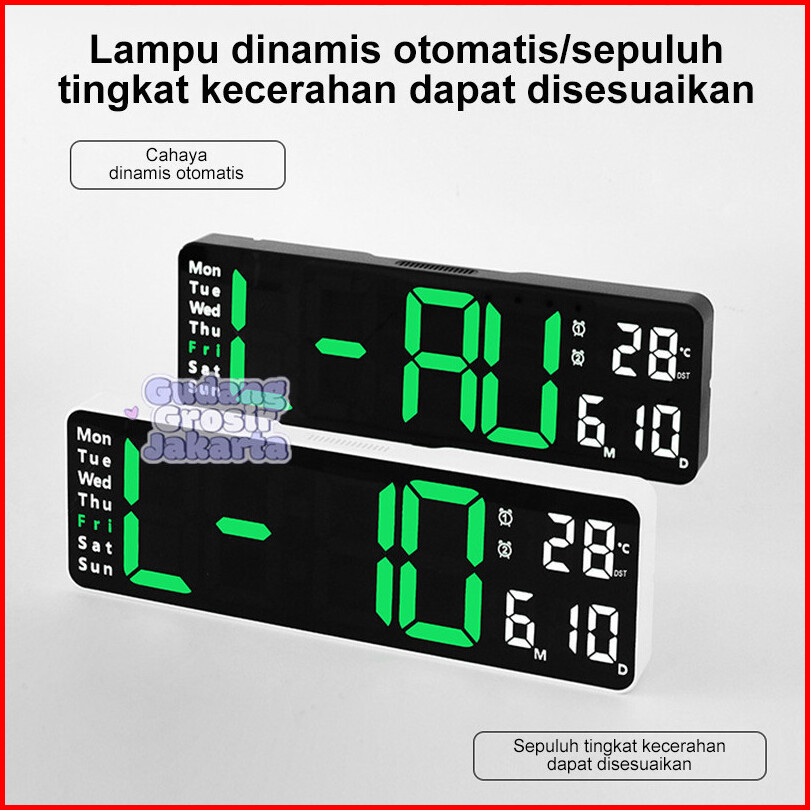 Jam Meja Dinding Digital Led Clock Hijau Putih Karakter