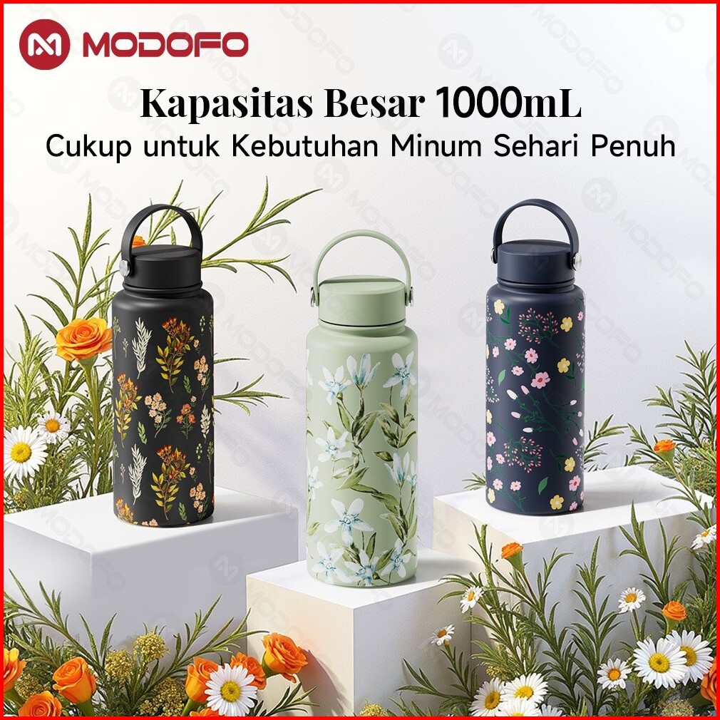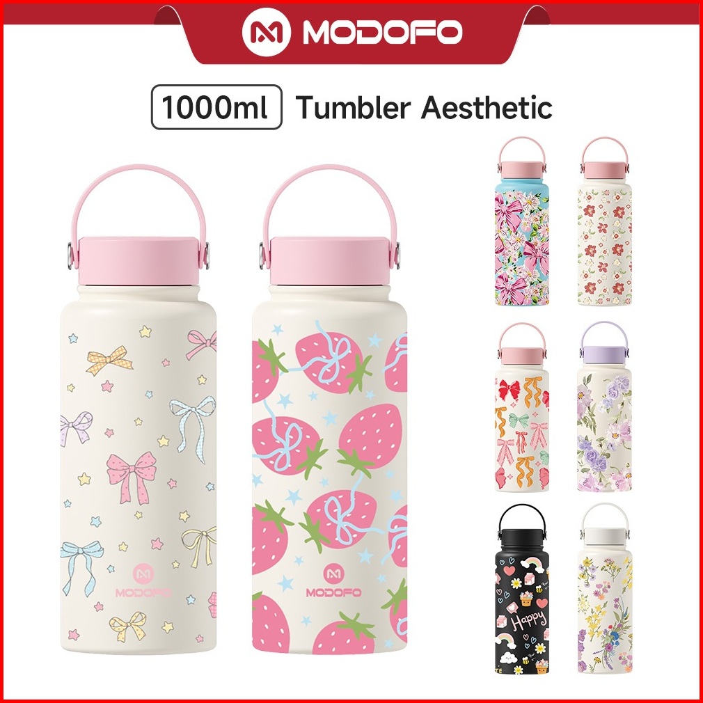 Modofo Botol Minum Aesthetic 1 Liter Lucu Tumbler Stainless Tumbler Tahan Panas Dingin 24 Jam Tumblr Aesthetic