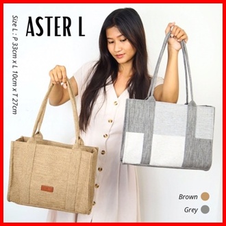 Tas Bahu Wanita Kanvas Aster L Totebag Tas Laptop - Roujee Jogja