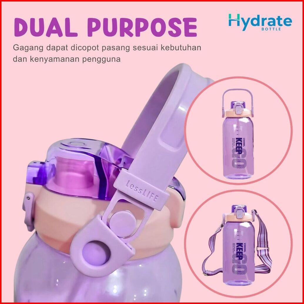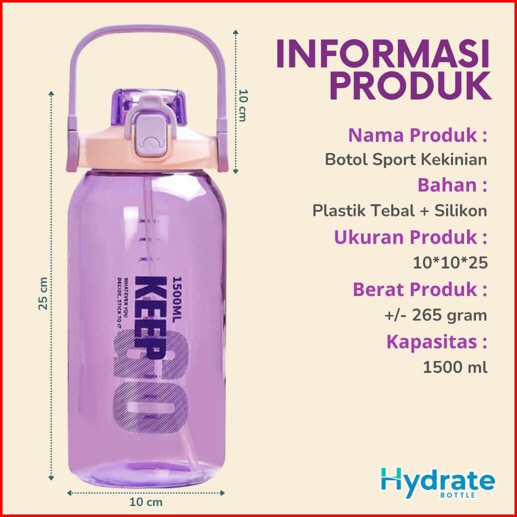 Hydrate Botol Minum Keep Go Sport Bottle 1.5l Premium Besar Tumbler Sedotan Tali Pegangan Yh-8024