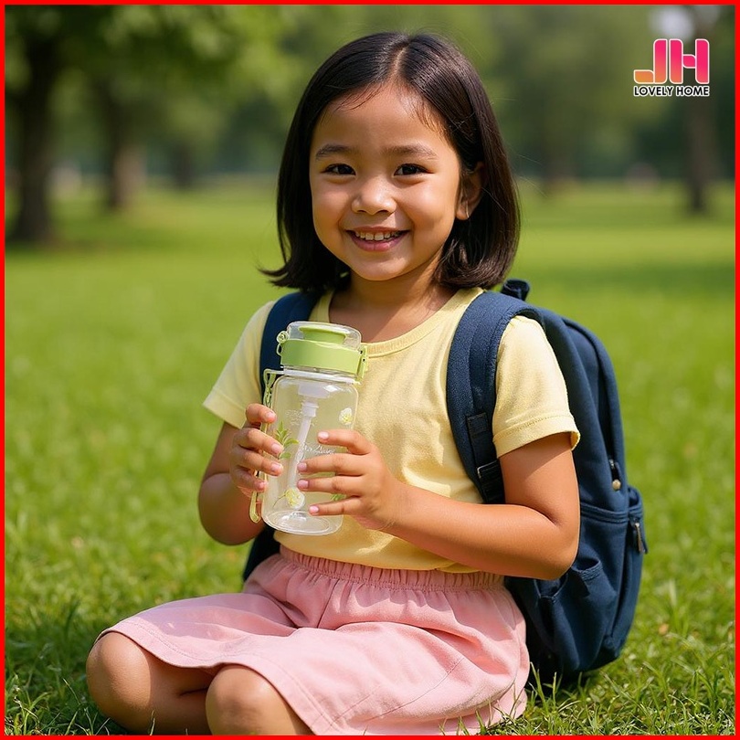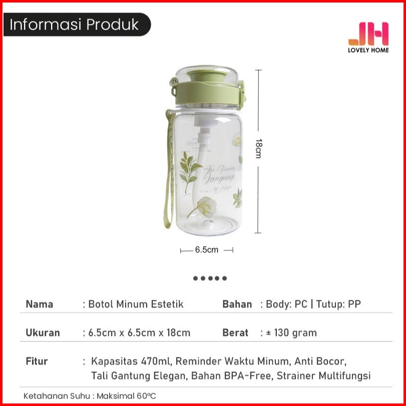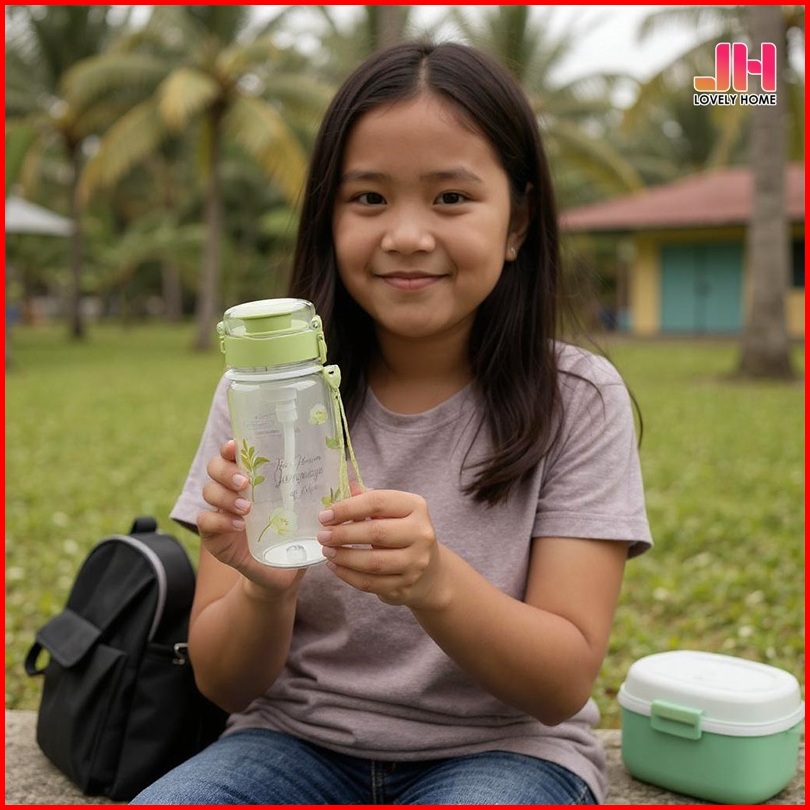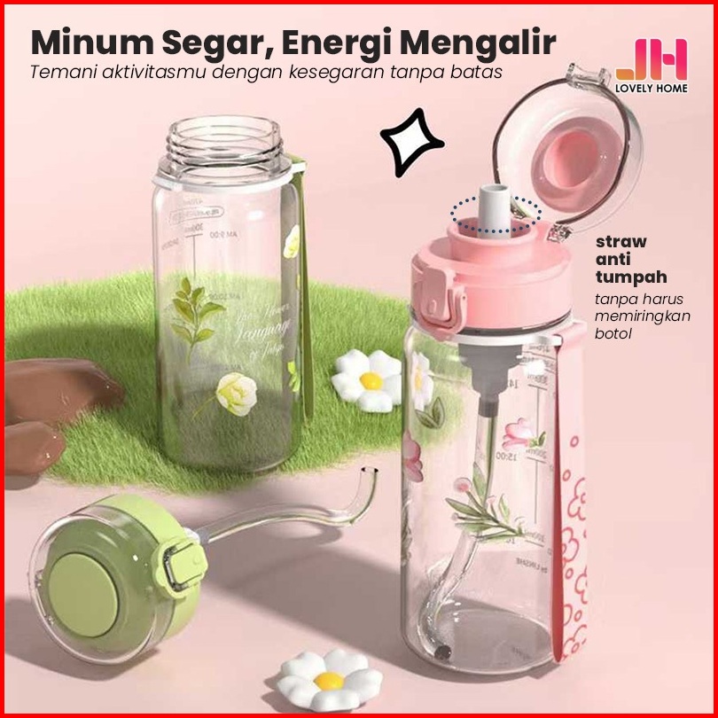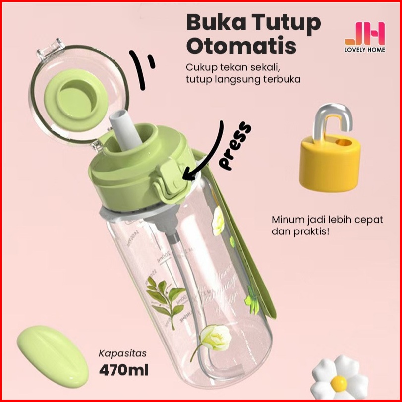 Lbyh-8046 Botol Minum Estetik Motif Floral Sedotan 470ml Portable Botol Sekolah Lovelyhomeshop88