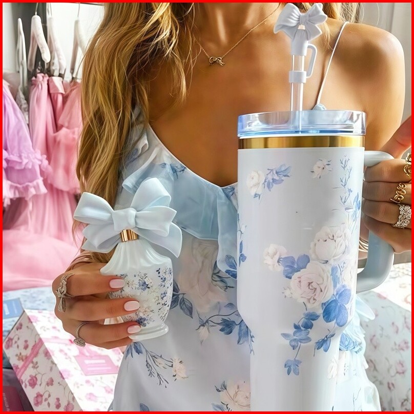 Tumbler Stainless Fancy 40oz 1200ml Dengan Sedotan Full Box Set Tumbler Tahan Panas Dingin