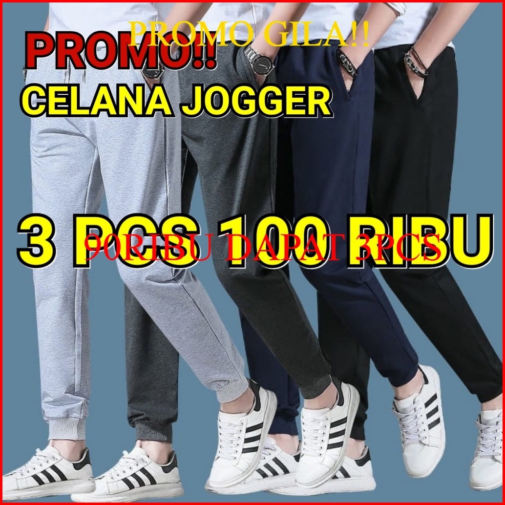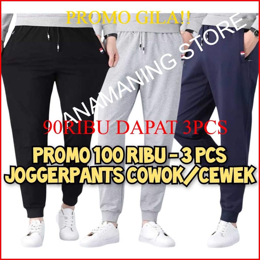 Paket Hemat 90rb Dapat 3pcs Celana Jogger Pria Wanita Trening Terening Training Trining Size 27-38