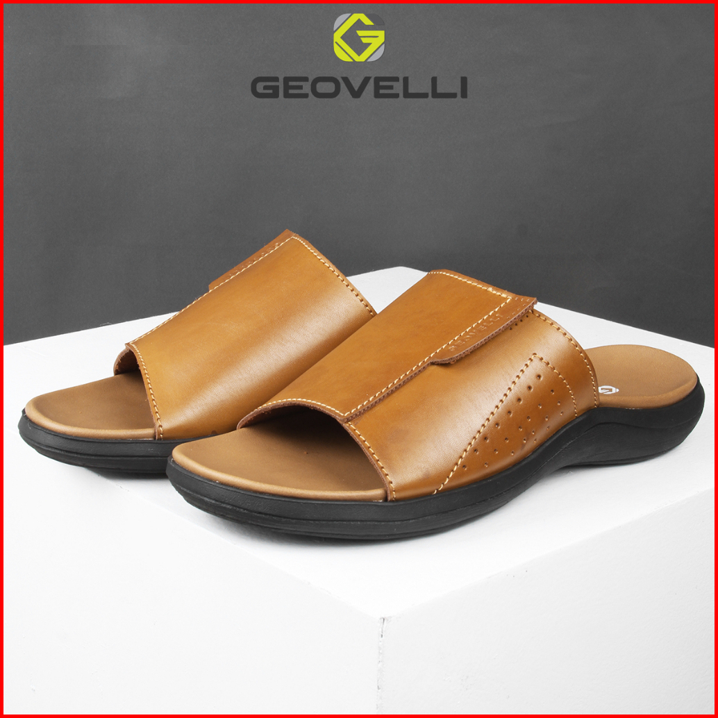 Gvl Geovelli G-1992 Sandal Pria Kekinian Santiago Sandal Kulit Warna Tan Slide 39-43
