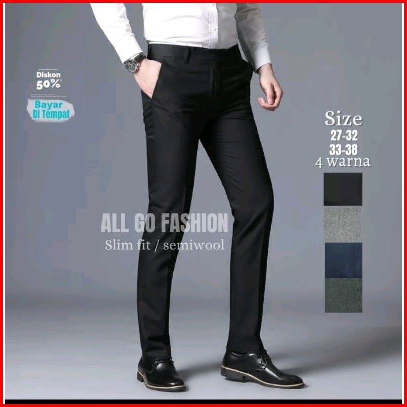 Celana Bahan Kantor Formal Slimfit Pria Size 27-38