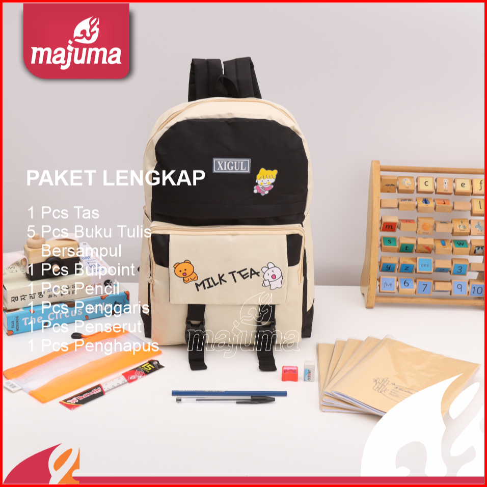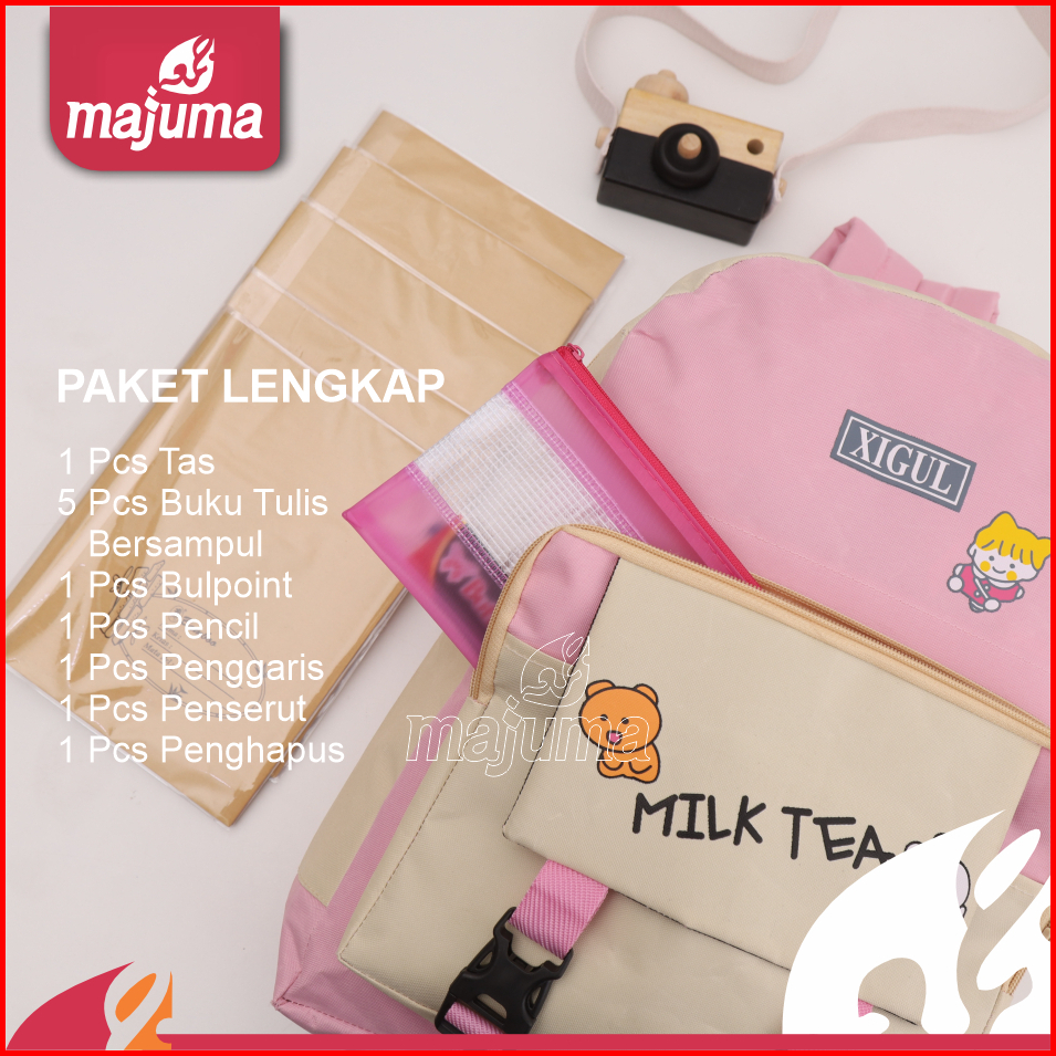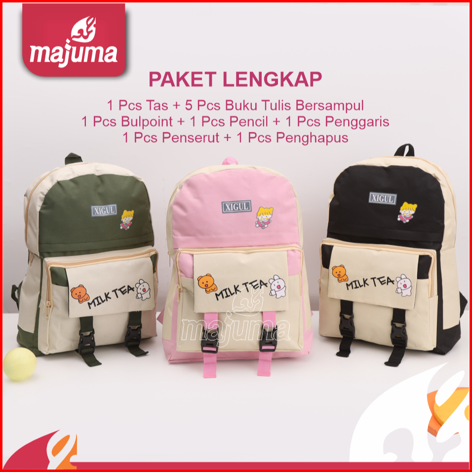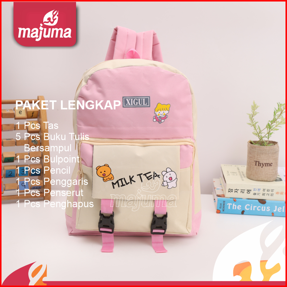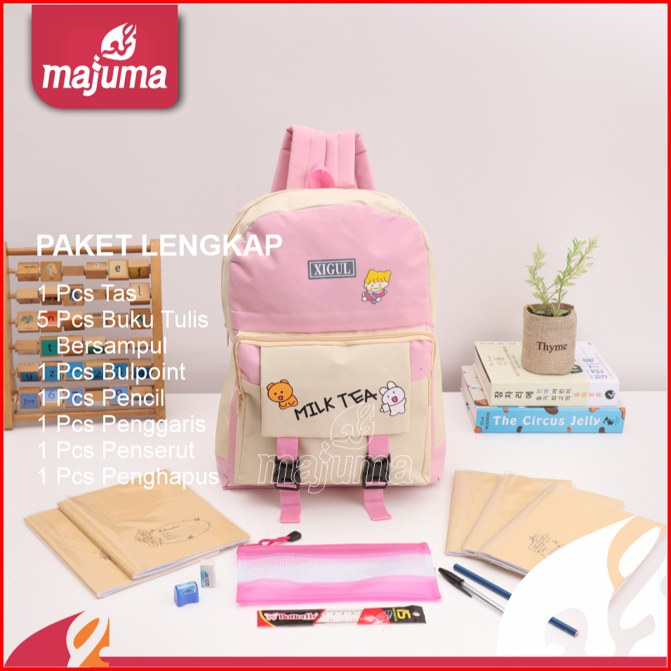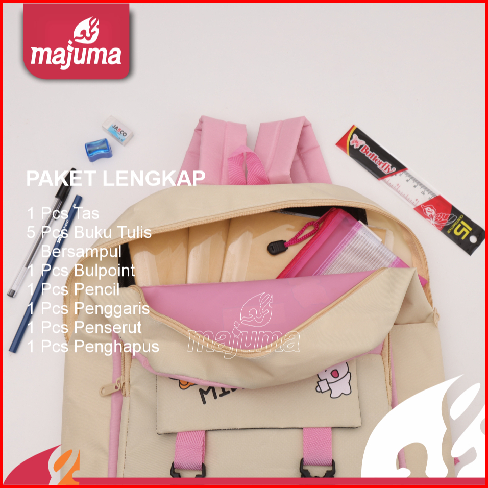 Majuma Paket Lengkap Sekolah Murah Tas Pink Buku Tulis Ball Poin Pencil Penggaris Penserut Penghapus