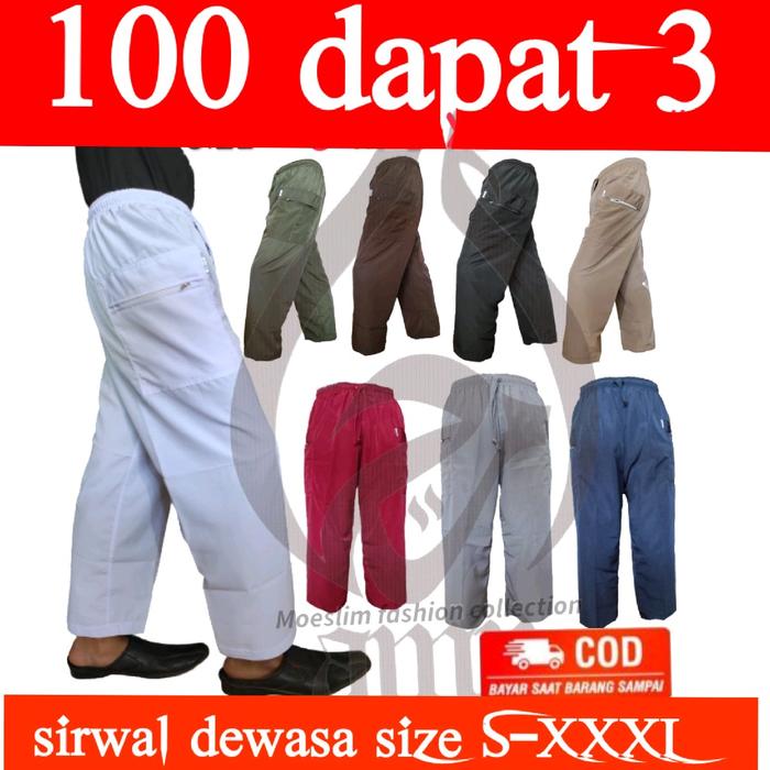 Celana Sirwal 100 Dapat 3 Pcs Pangsi Dewasa Size S- Xxxl Polos Kantong Katun Pria Panjang Tebal Kerja Hitam Cowok Formal