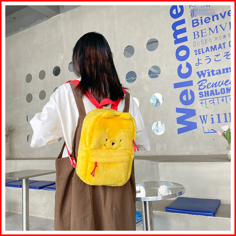 Tas Ransel Disney Plushie Karakter Lotso Monster Inc Pooh Chipmunk Backpack Bulu Lucu Wanita Remaja Tas Ransel Boneka Ch