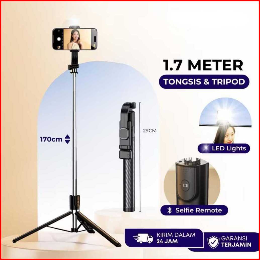 Tongsis Bluetooth 4in1 R1s-l Tongsis Tripod Remote Shutter Lampu Led 170cm Selfie Stick 360 Derajat