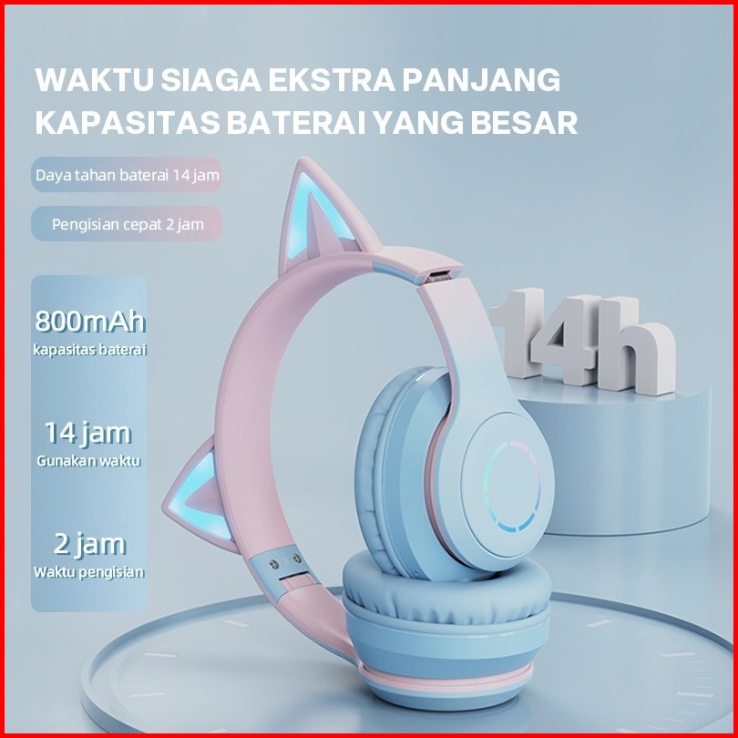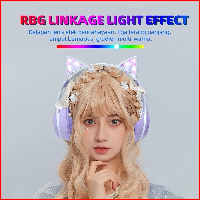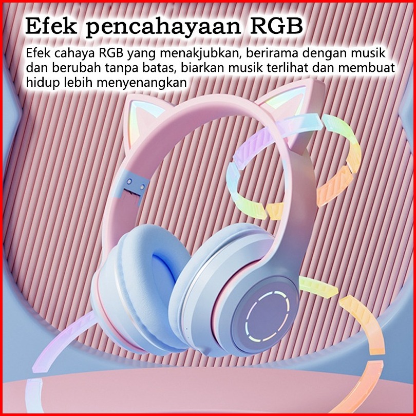 Gradien Dapat Dilipat Headphone Cat Ears Karakter Headset Bluetooth Wireless Rgb Permainan Earphone