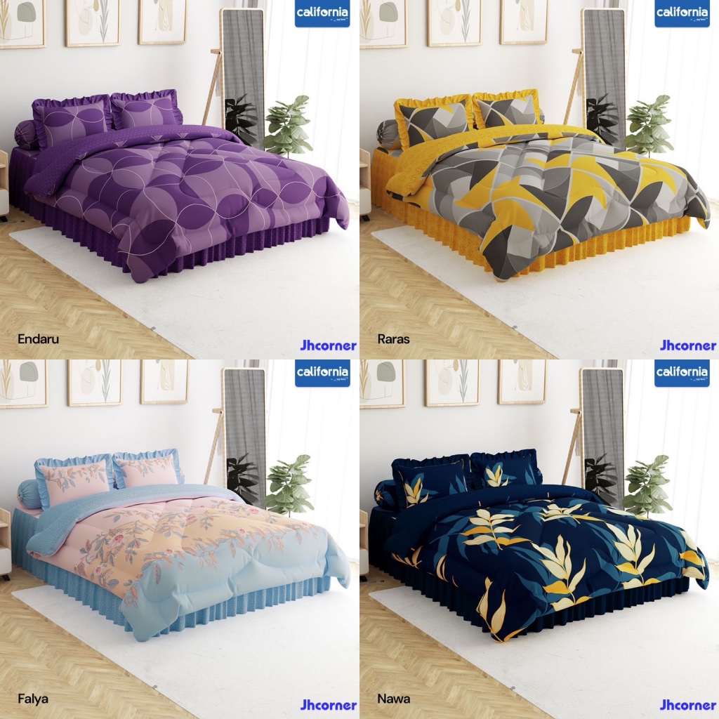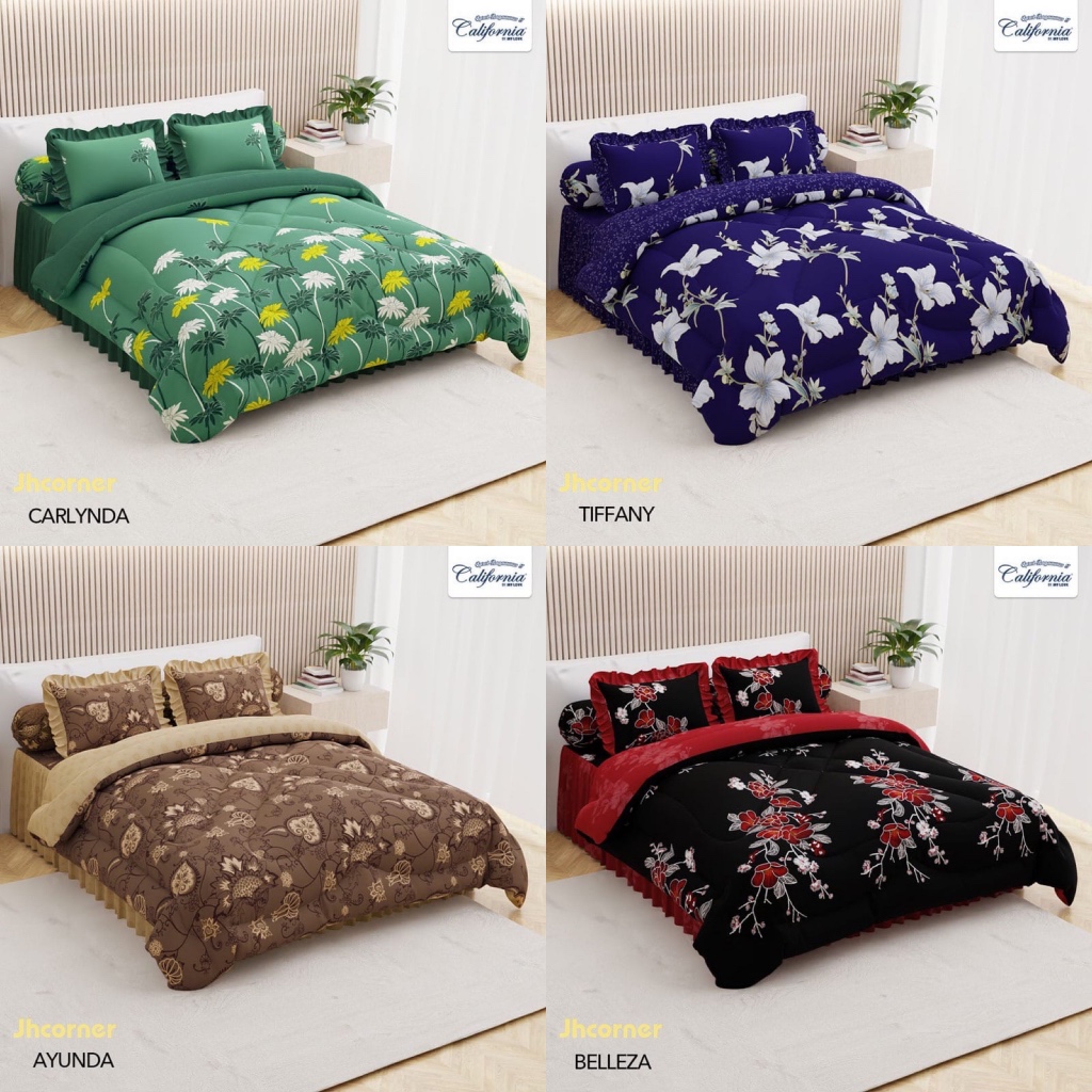 Set Bedcover California Sprei Rumbai Ukuran 180x200cm 6 kaki King Size Tinggi 20cm Motif Terbaru Terlaris