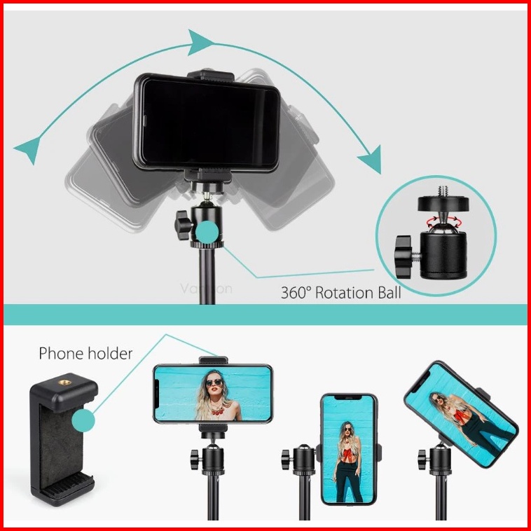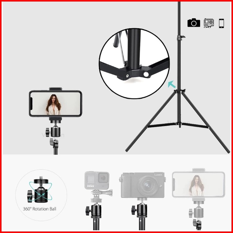 Tripod Stand 2.1 M Meter Dengan Miniball Dan Holder U Untuk Handphone Dan Kamera