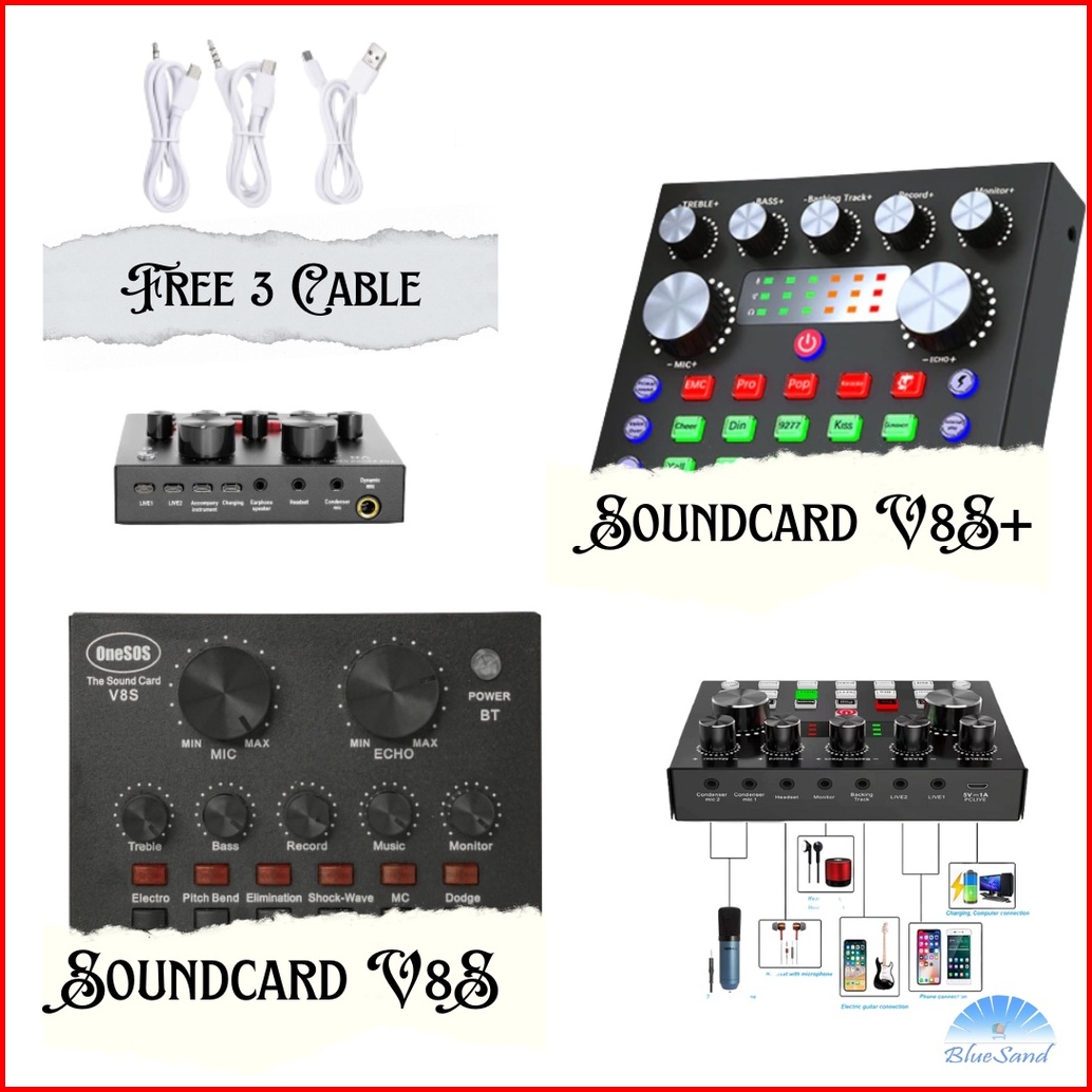 V8 Soundcard Mixer External Soundcard V8s Plus Led Usb Audio Broadcast