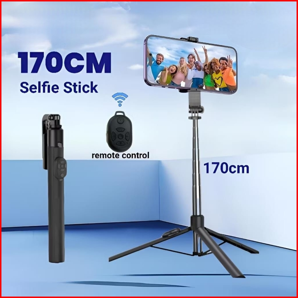 Tongsis 1.7 Meter Bluetooth Selfie Stick Tripod Jumbo Remote Multifungsi 3 In 1 170cm Multipod Foto Video