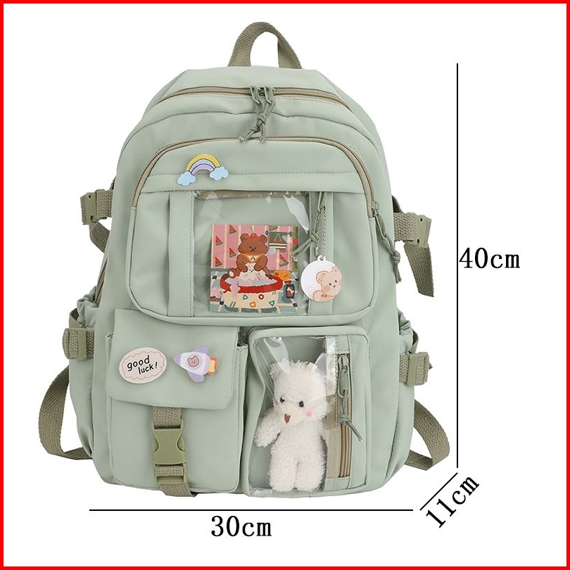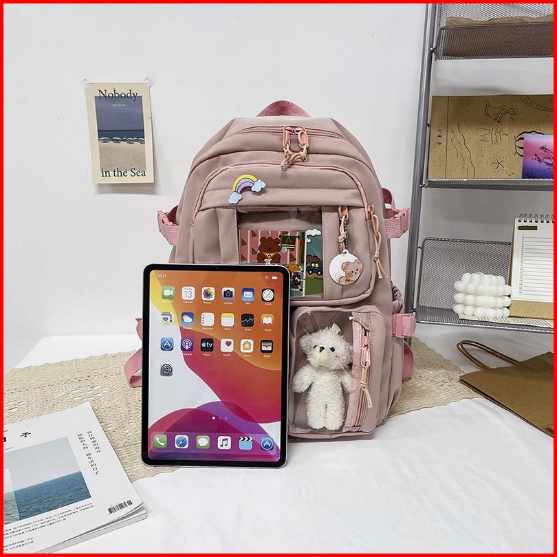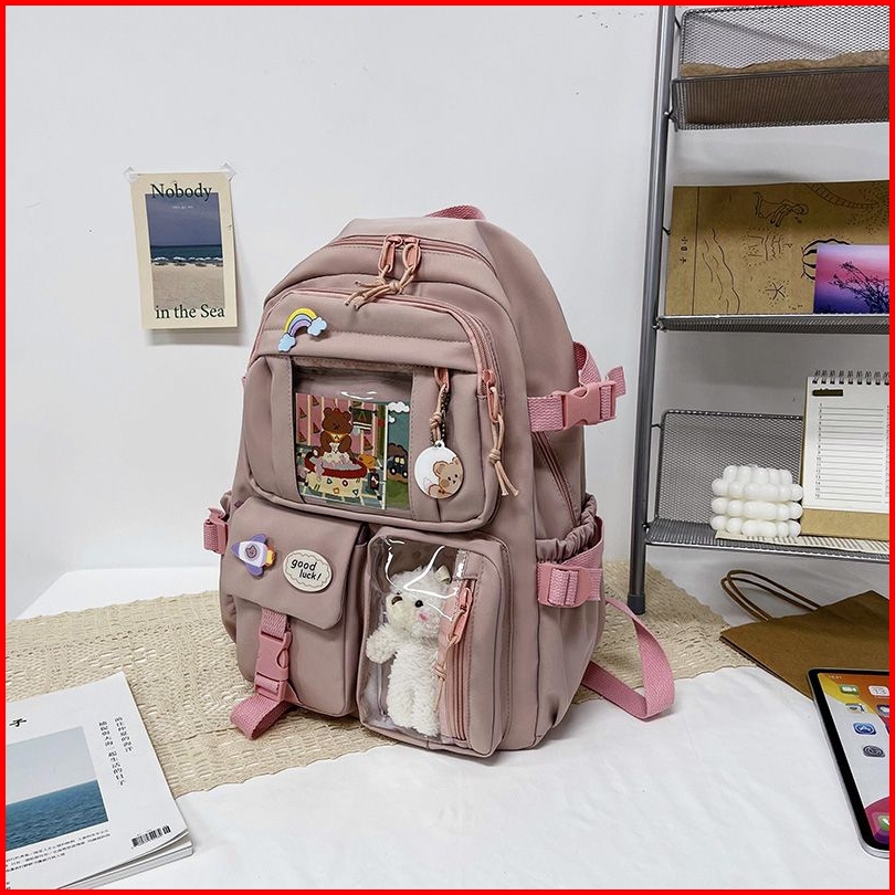 Ransel Wanita Lucu Tas Ransel Sekolah Canvas Multi Saku Tas Siswa Ransel Buku Mochilas
