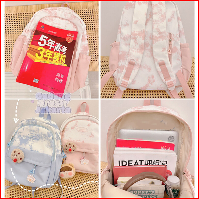 Tas Sekolah Siswa Pink Lucu Tas Bahu Ins Jepang Tas Ransel Wanita Berkapasitas Korea Import Fashion Warna Tabrakan Macar