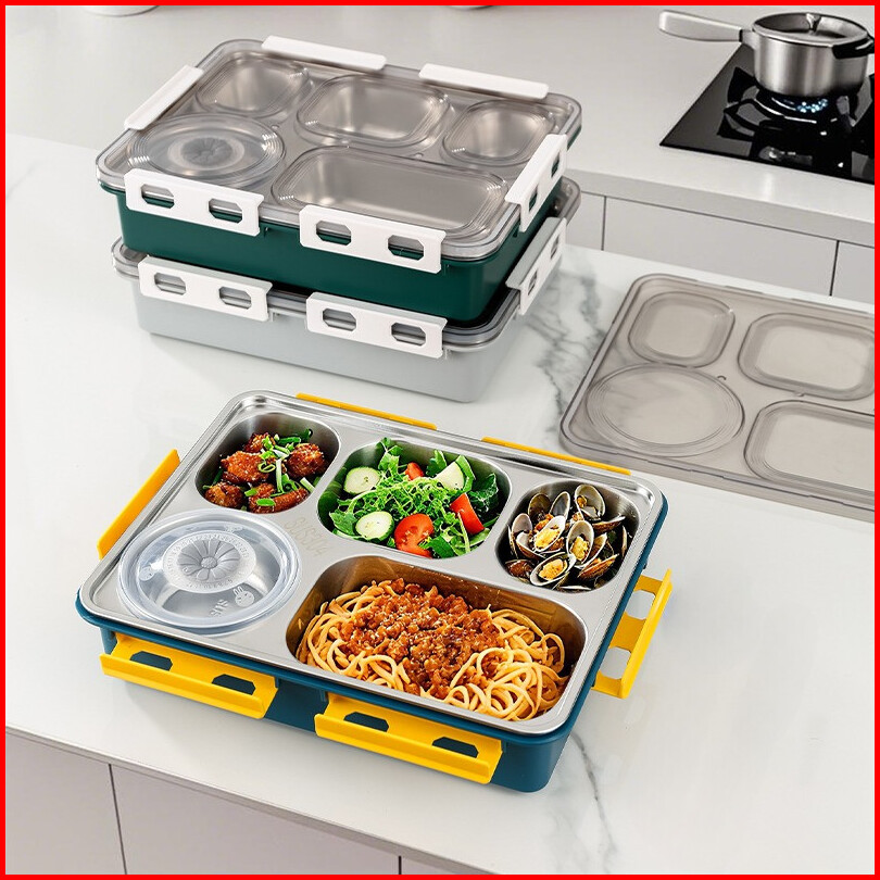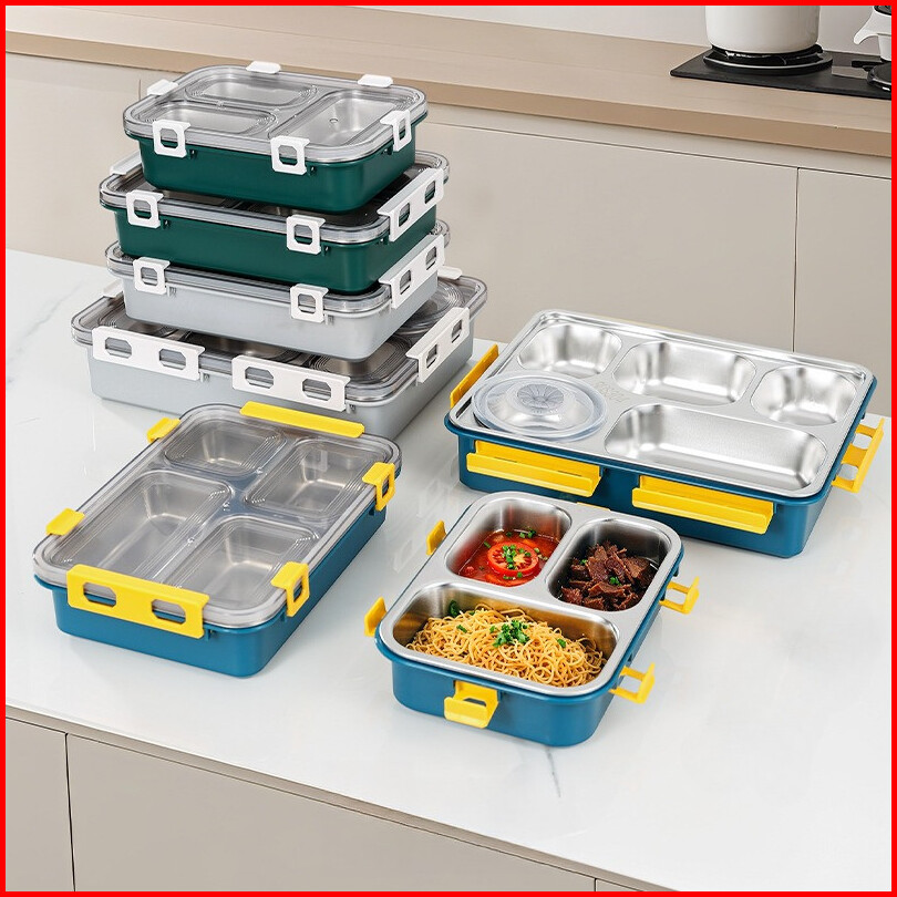 Lunch Box 3 4 5 Sekat Kotak Makan Stainless Steel 304 Seal Karet Anti Tumpah Campur Rasa Tahan Karat
