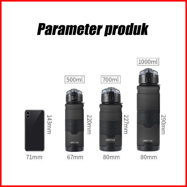 1500ml Botol Minum Upstyle Premium Sport Water Bottle Frosted Olahraga Sedang Usa Tritan Portable Cup Bpa Free